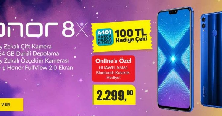 A101 Honor 8x Alana Hem Bluetooth Kulaklik Ve 100 Tl Lik Hediye Ceki